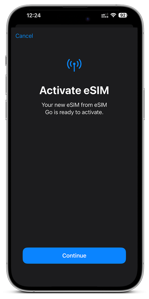 Datu plānu savā ierīcē vari iestatīt skenējot QR kodu vai iestatot eSIM manuāli. Pēc ierašanās nomainiet Mobilos Datus izmantošanas avotu un SimAbove eSIM. Mobilajam internetam jāparādas pāris minūšu laikā.